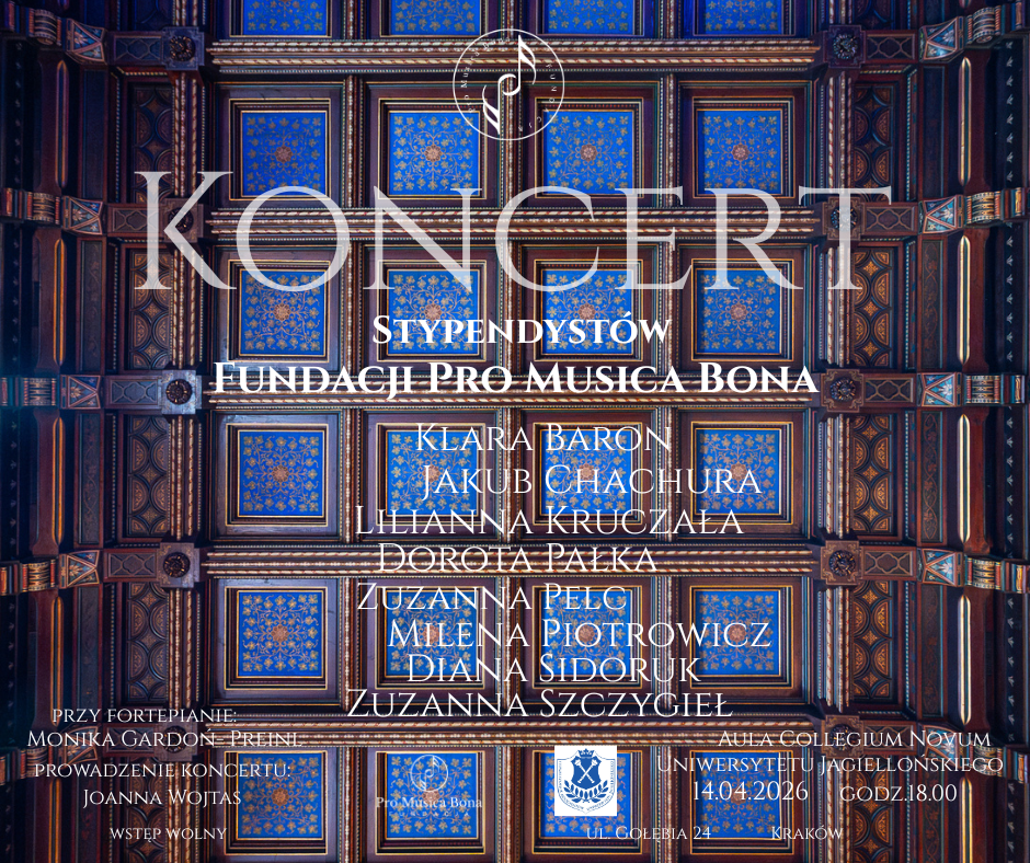 Wspieranie najzdolniejszych uczniów szkół muzycznych I i II stopnia oraz studentów uczelni muzycznych ze szczególnym uwzględnieniem regionu Małopolski jest naszym priorytetem. Jako Organizacja Pożytku Publicznego chcemy nie tylko pomagać im finansowo, ale przede wszystkim umożliwić im koncertowanie dla szerokiej publiczności. Kontakt ze sceną, oswajanie tremy, zaistnienie w realnym świecie muzycznym jest bezcenną wartością dla utalentowanych młodych ludzi. Współczesny świat oczekuje też od artysty obecności w sieci. O ten aspekt promocji również dbamy promując naszych stypendystów w mediach społecznościowych Fundacji Pro Musica Bona .