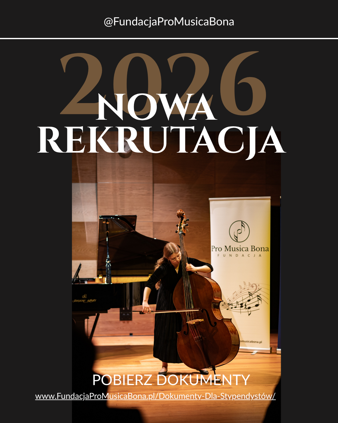 Wspieranie najzdolniejszych uczniów szkół muzycznych I i II stopnia oraz studentów uczelni muzycznych ze szczególnym uwzględnieniem regionu Małopolski jest naszym priorytetem. Jako Organizacja Pożytku Publicznego chcemy nie tylko pomagać im finansowo, ale przede wszystkim umożliwić im koncertowanie dla szerokiej publiczności. Kontakt ze sceną, oswajanie tremy, zaistnienie w realnym świecie muzycznym jest bezcenną wartością dla utalentowanych młodych ludzi. Współczesny świat oczekuje też od artysty obecności w sieci. O ten aspekt promocji również dbamy promując naszych stypendystów w mediach społecznościowych Fundacji Pro Musica Bona .
